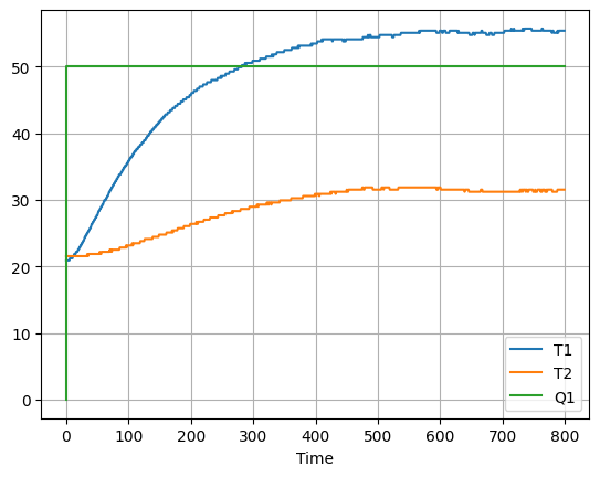 dove \(\Delta U\) è l’entità del cambiamento graduale. Conversione nella notazione utilizzata per il laboratorio di controllo della temperatura dove \(y(t) = T_1(t)\) e \(\Delta U = \Delta Q_1\)