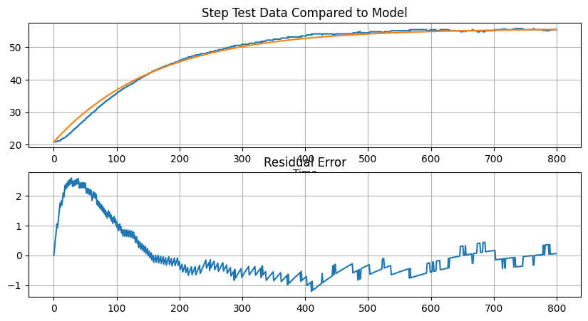 Un modello del primo ordine cattura determinate caratteristiche e fornisce un risultato ragionevolmente buono quando il sistema si avvicina a un nuovo stato stazionario. Il problema, tuttavia, è che per il controllo abbiamo bisogno di un buon modello durante il transitorio iniziale. È qui che il modello del primo ordine crolla e prevede una risposta qualitativamente diversa da quella che osserviamo.