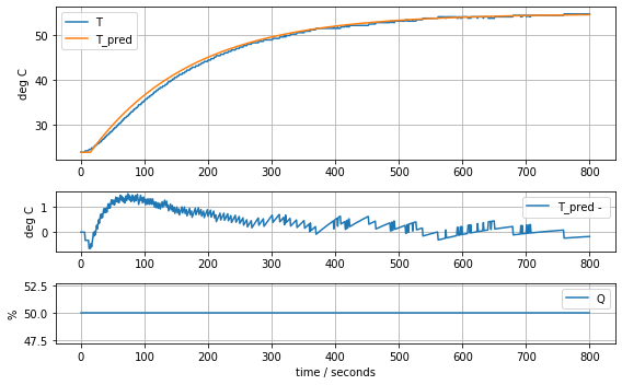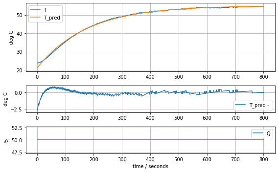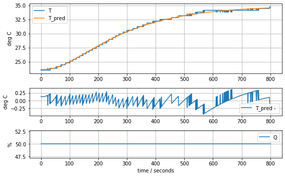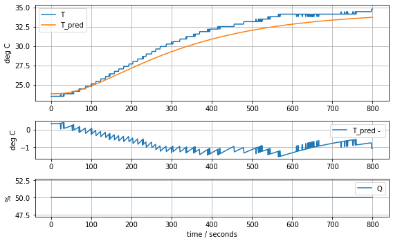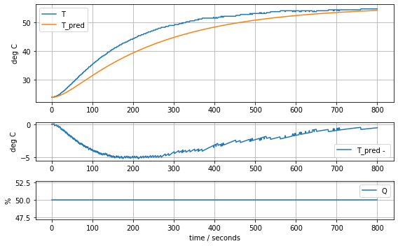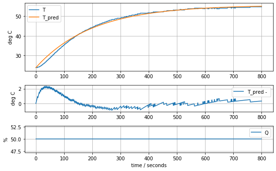 print("Heat capacity =", Cp, "J/deg C")Heat transfer coefficient Ua = 0.06278605683560866 watts/degree C
