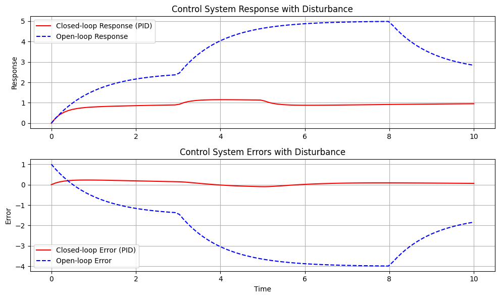 dydt = (-y + u + disturbance) / tau # Disturbance is added directly to the system dynamics